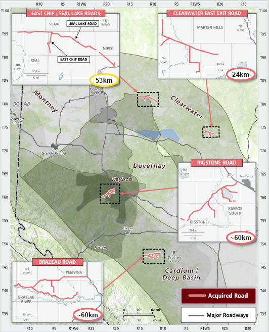Our second transaction is the acquisition of the BRC Road from Tidewater Midstream & Infrastructure Ltd., a midstream company. The BRC Road is a 60 km high grade network located in Brazeau County, Alberta and services operators working largely in the Cardium formation.